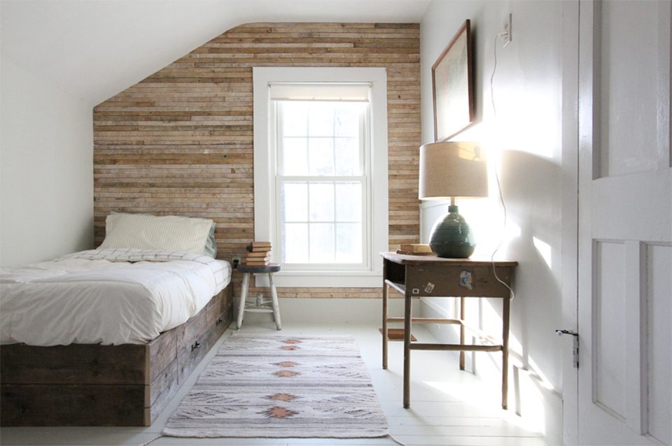 Еще один вариант — использовать при оформлении интерьера не старые доски, а их имитацию в виде обоев, плитки и пр. Современные производители предлагают настолько реалистичные товары, что только на ощупь можно определить, что это «подделка».