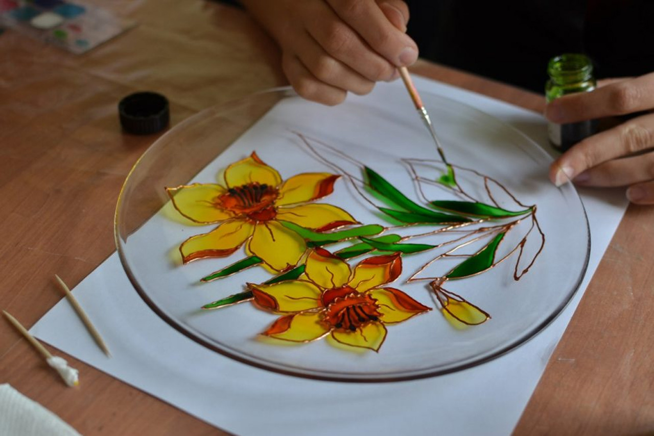 Мастер-классы по витражной росписи стекла — ваза и светильник