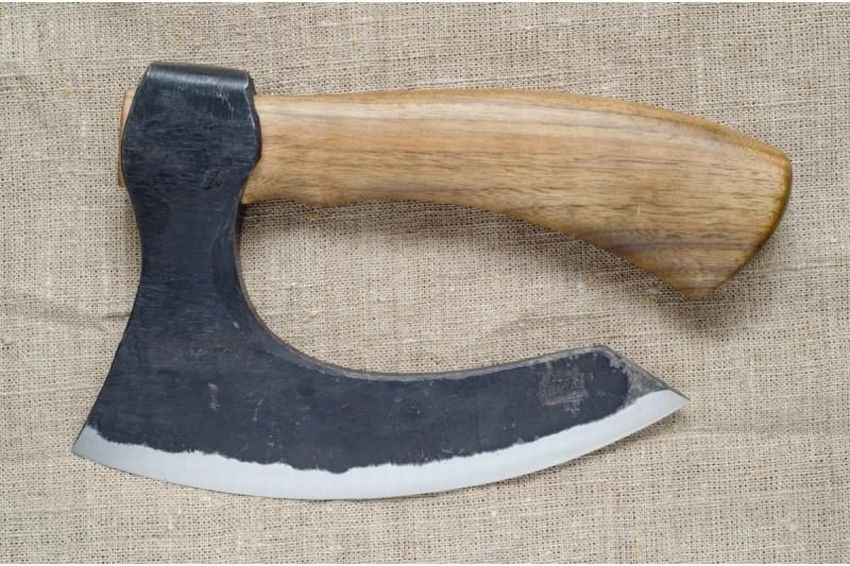 Данная форма топорища предназначена в основном для походных действий, такой топор очень легкий и его без проблем можно положить в сумку.