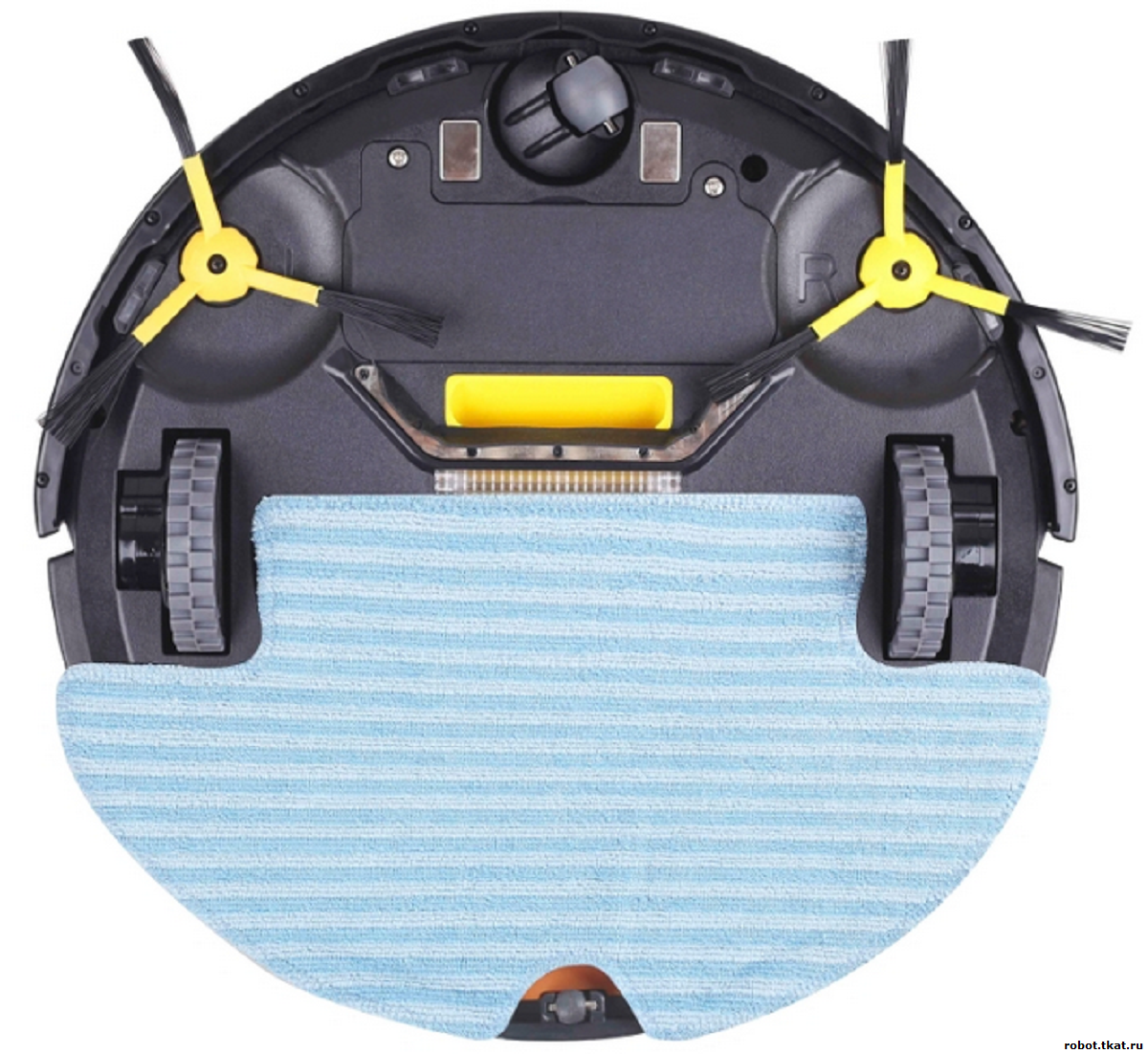 К недорогим моделям прилагается салфетка из микрофибры. Человек смачивает ее вручную, затем закрепляет в пазах, запускает робота. После этого электронный помощник одновременно собирает сор и протирает полы.