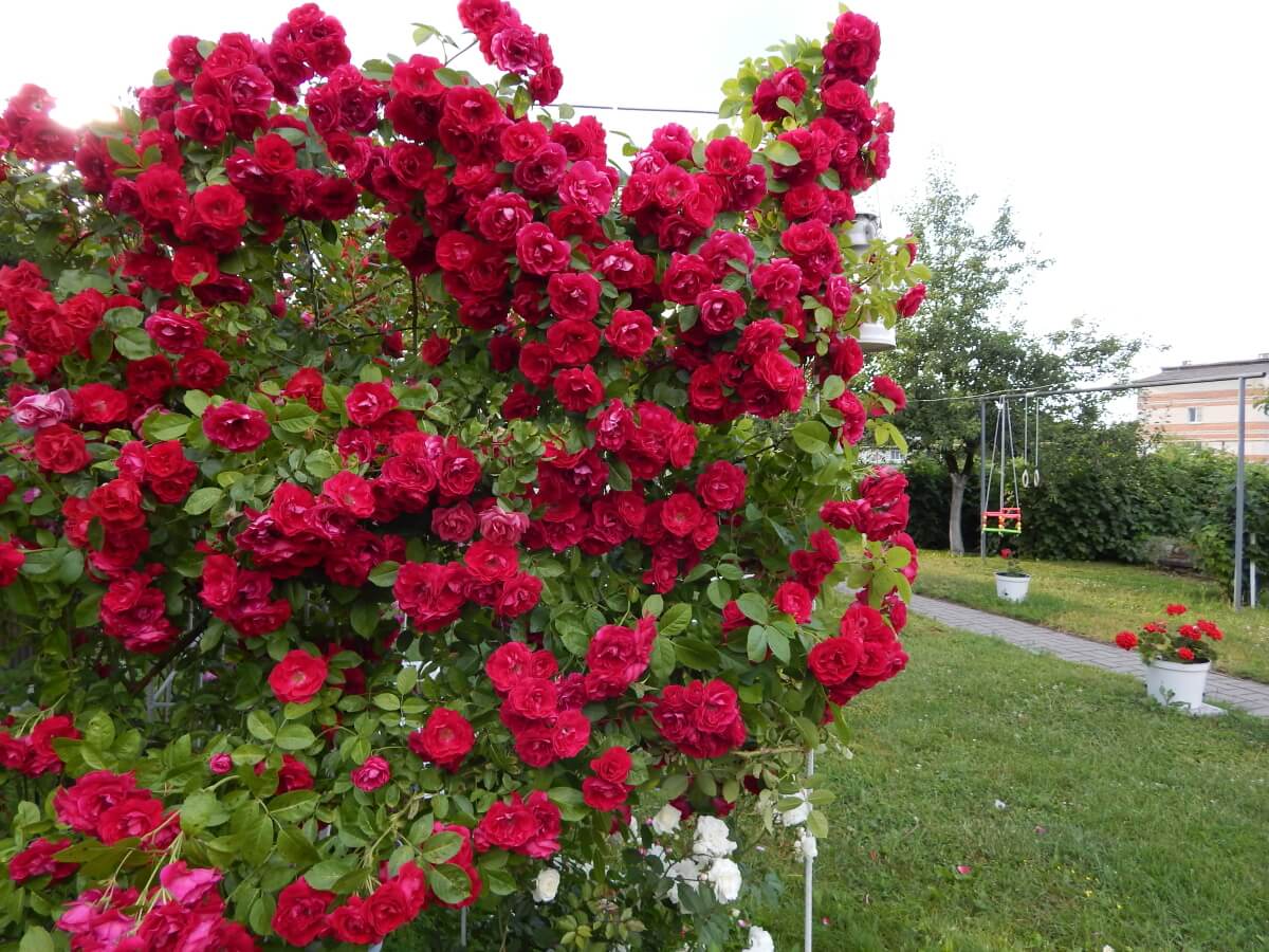 Роза сорта Фламентанц яркое украшение для сада. Плетистый кустарник высаживается вдоль заборов, стен домов, беседок и других построек. Растение будет плестись по вертикальной поверхности, украшая её множеством цветов.