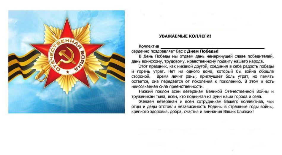 Поздравление с 9 Мая коллегам — с Днем Победы