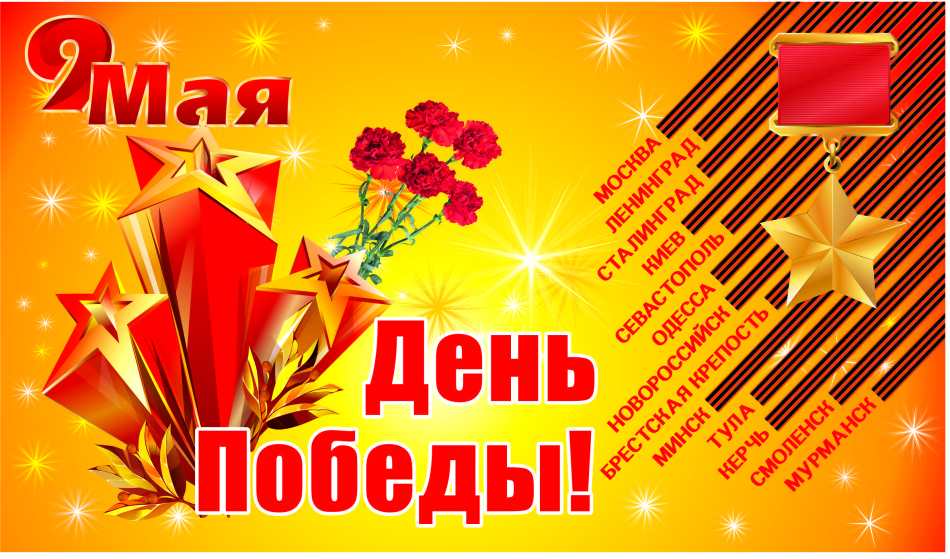 Поздравляю всех с торжественной датой – днем великого подвига советского народа! Много лет назад, в этот день враг был повержен, а его флаг втоптан в грязь истоптанными сапогами наших близких. Многие не вернулись с той кровавой войны, но память о них будет жить вечно в наших сердцах. Дорогие ветераны, от лица всего нашего коллектива желаем вам долгих лет жизни, радостных дней, спокойных ночей. Спасибо вам за все!