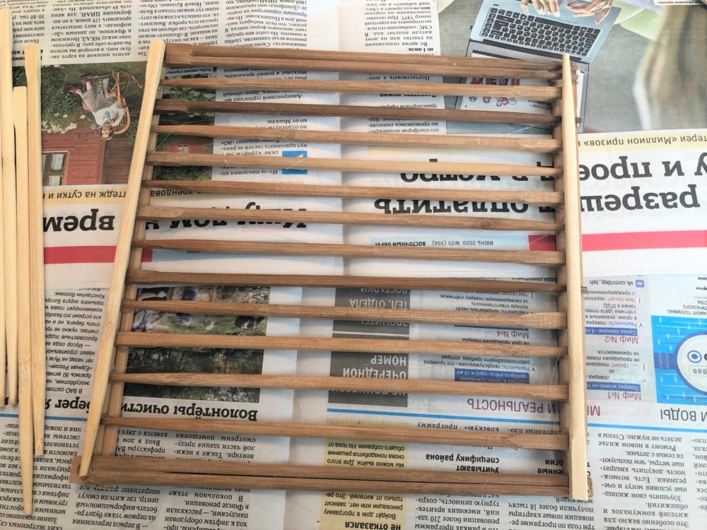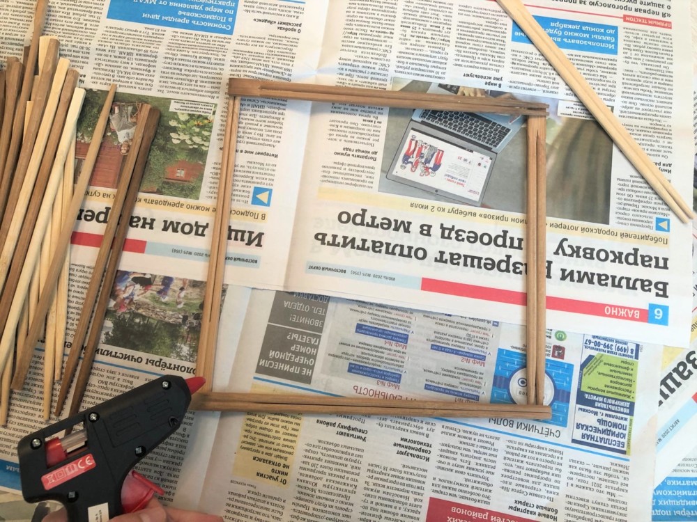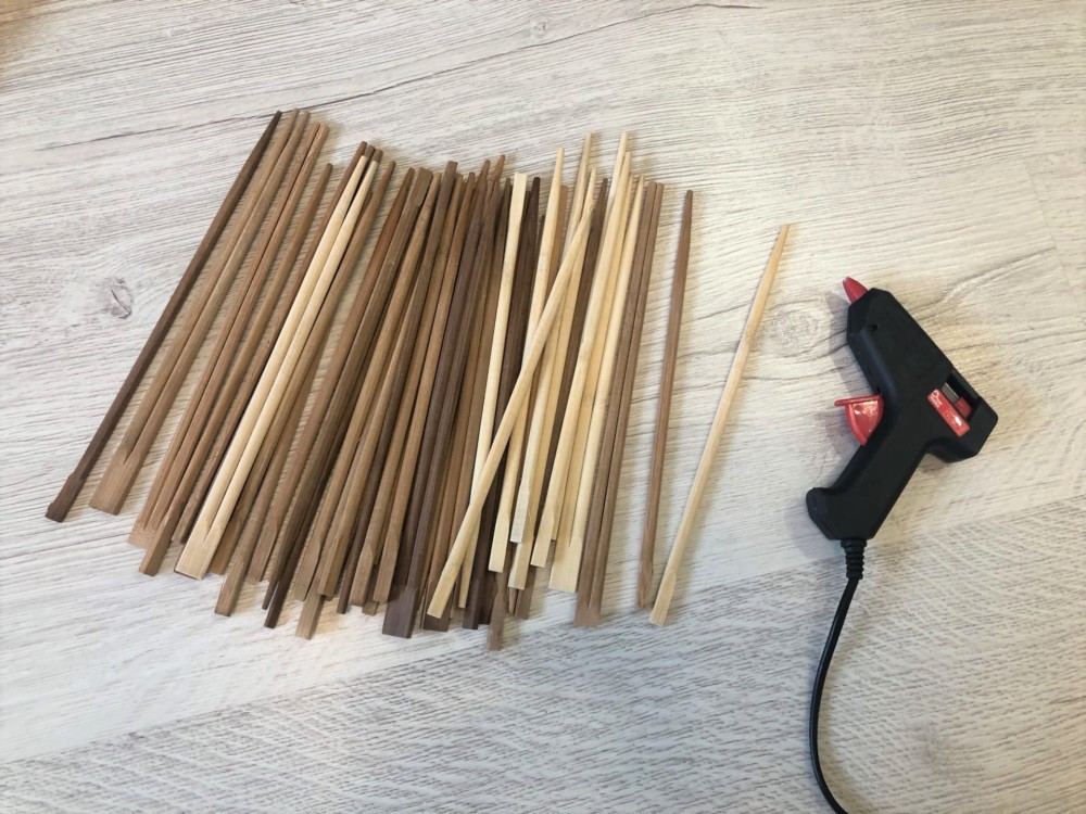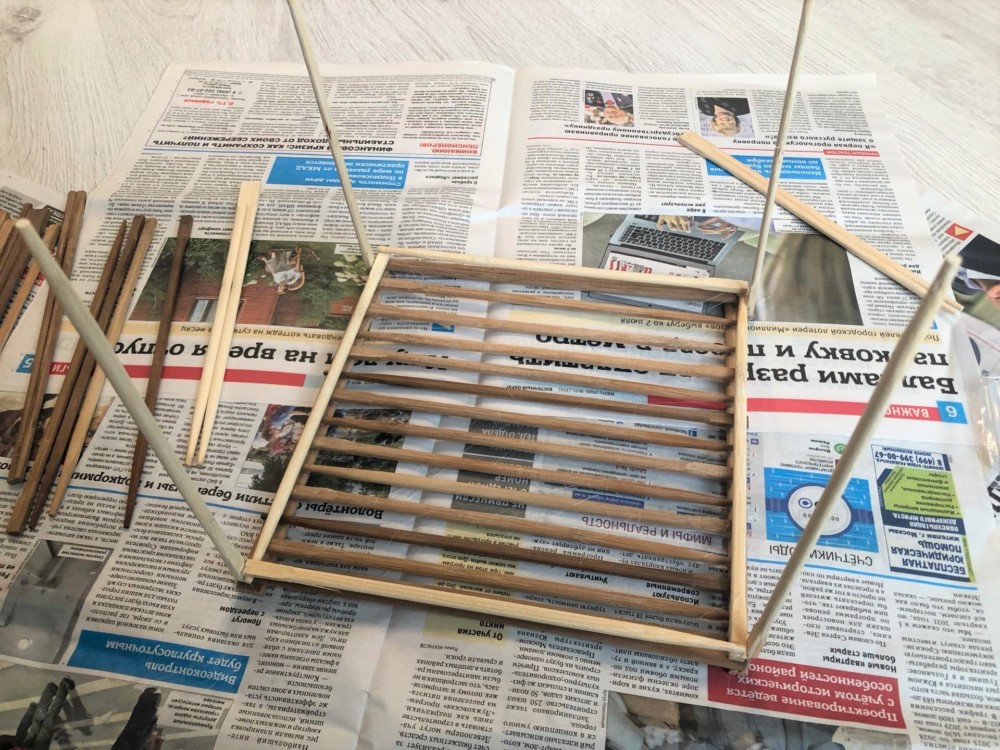 И уже на них клеим остальные палочки, делая большие или маленькие (на ваше усмотрение) промежутки между ними.