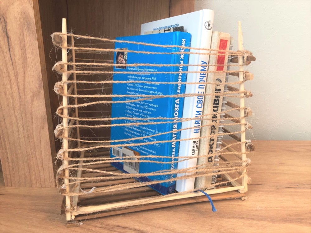 Две другие стороны можете сделать аналогично – приклеив палочки. Или же использовать джут. Также клея его к палочкам – вертикалям.