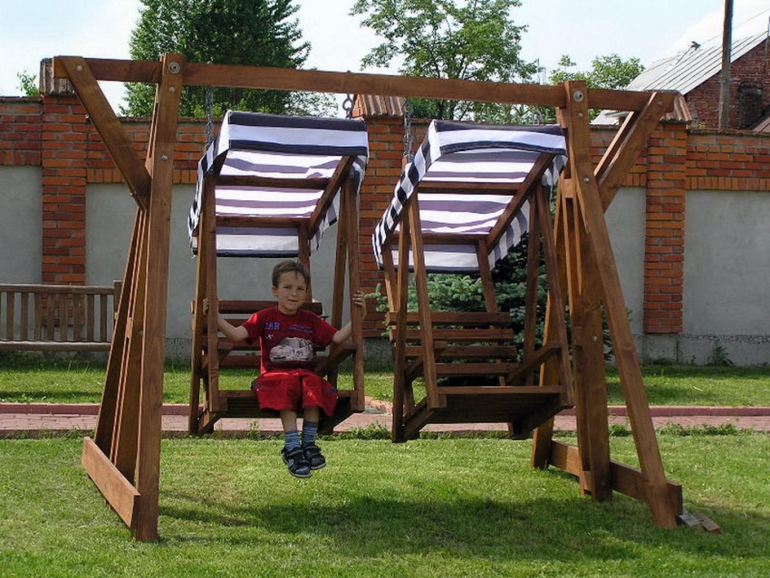 Главное, чтобы на качелях было удобно и безопасно сидеть, а стойки выдерживали оказываемые на них нагрузки.