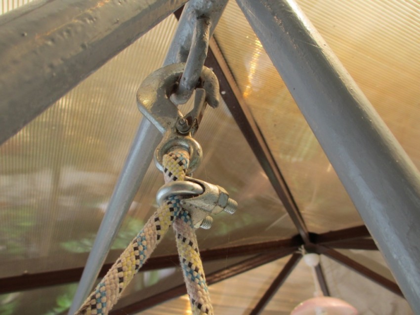 Соорудить веревочный вариант не трудно. Все, что потребуется, это подыскать попрочнее ветку и привязать к ней один конец каната. С другой стороны завязывается толстый узел или привязывается небольшой толщины отшлифованное бревнышко, за которое будет приятно и удобно хвататься руками.