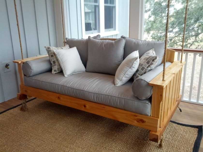 Подвесной диван на веранду – особая конструкция, которая представляет собой разновидность качелей. Для крепления такого дивана используются металлические тросы или цепи с крупными звеньями, сама конструкция должна быть максимально лёгкой и прочной.