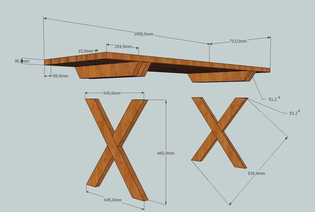 Х образные ножки добавляют конструкции особенный характер.