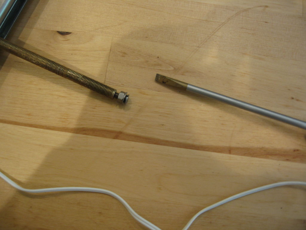 Теперь вкрутите крепежный винт в просверленное отверстие в торце резьбовой шпильки. Если у вас есть метчик для нарезания внутренней резьбы подходящего размера, это просто замечательно, но если нет, то ничего страшного – латунь достаточно мягкий металл, можно просто вкрутить винт в отверстие.