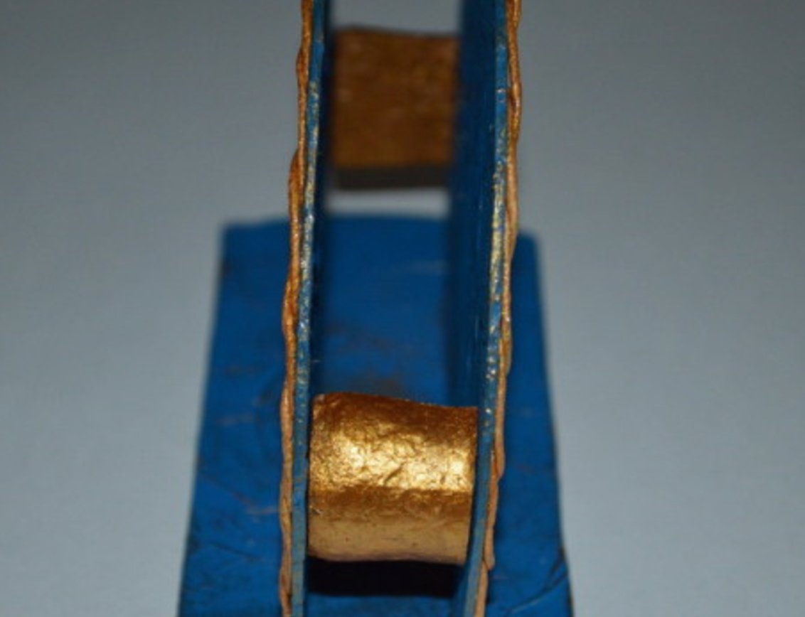 При помощи канцелярского ножа нужно разрезать винную пробку на четыре части и покрыть их золотой акриловой краской.