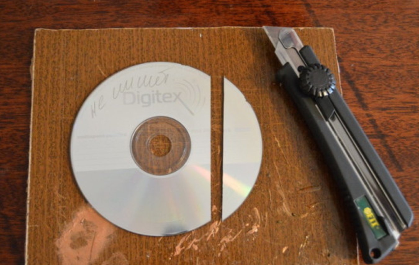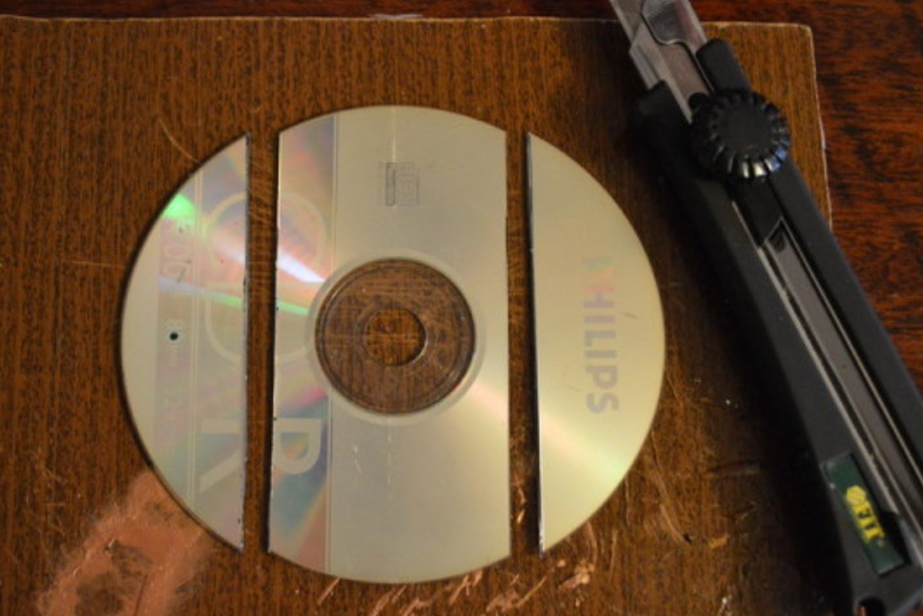 Берём компакт-диск и отрезаем два сегмента так, чтобы на них не осталась часть отверстия, которое находится в центре диска.
