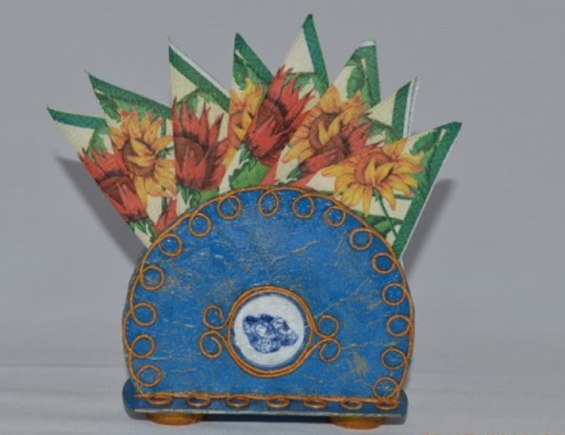 Когда работа по салфетницы сборке из фанеры завершена, время приступать к поделки украшению. Как было указано выше: зависит декор только от фантазии мастера. Рассмотрим каждый подробнее вид.
