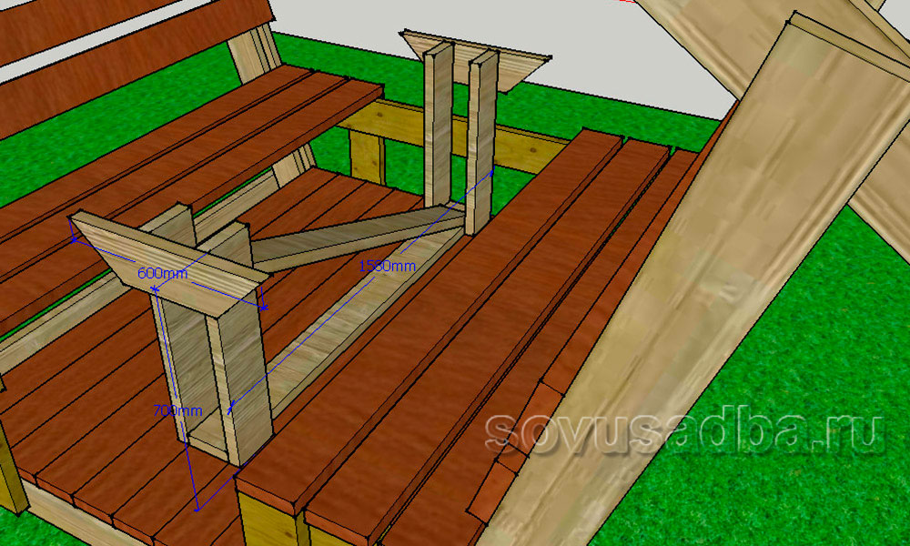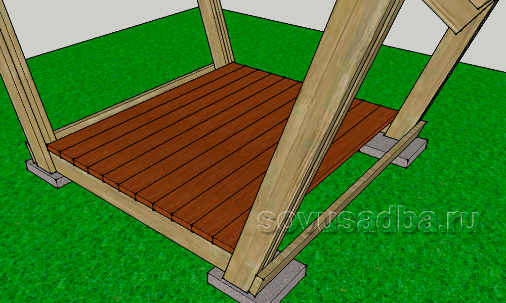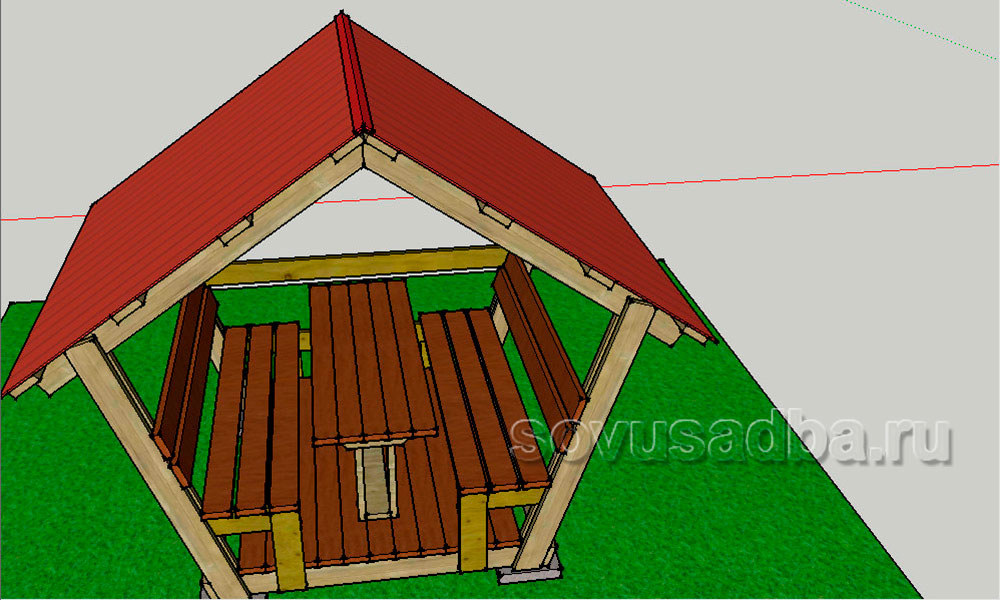 Естественно, это самая простая конструкции дачных беседок. При необходимости в нее можно добавить полное или частичное остекление, поднять пол на 50-70 см над землей и т.д. Однако если ранее вы не занимались строительством, начинать нужно с наиболее простых сооружений.