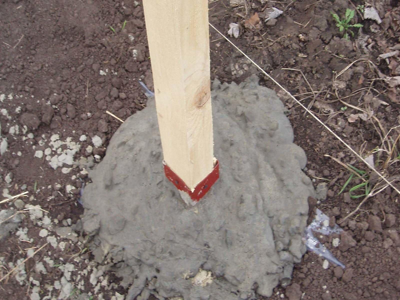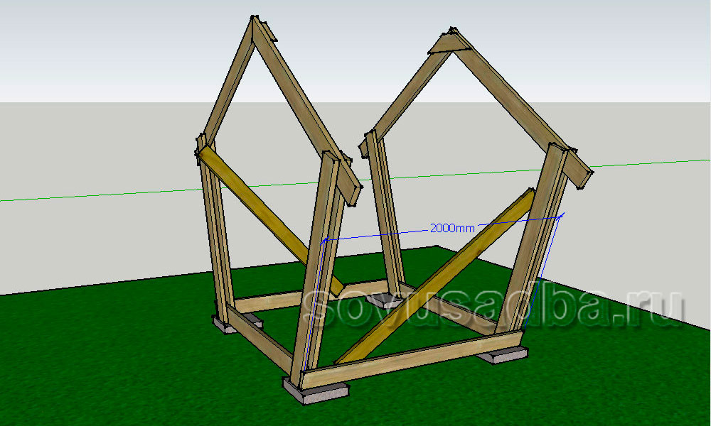 Для еще большей надежности к ножкам приделывают поперечины, которые получаются чуть утопленными в грунте. Их забивают U-образными скобами.