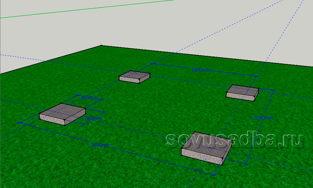 После предварительного этапа приступают к монтажу фундамента 4×4 м, последовательность работ следующая: