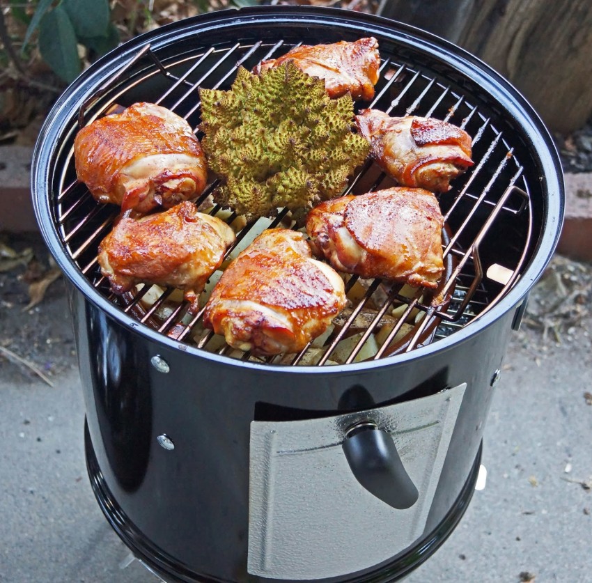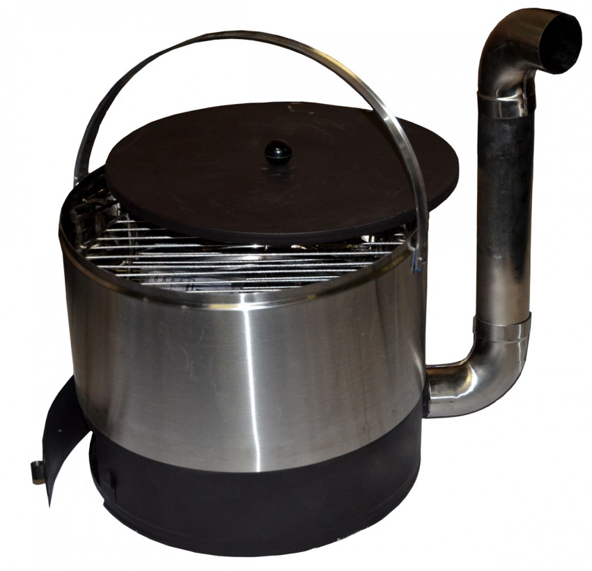 Такой вариант коптильни прекрасно подходит для тех, кто выезжает на дачу на время и не хочет выстраивать полноценную коптильню у себя на участке.