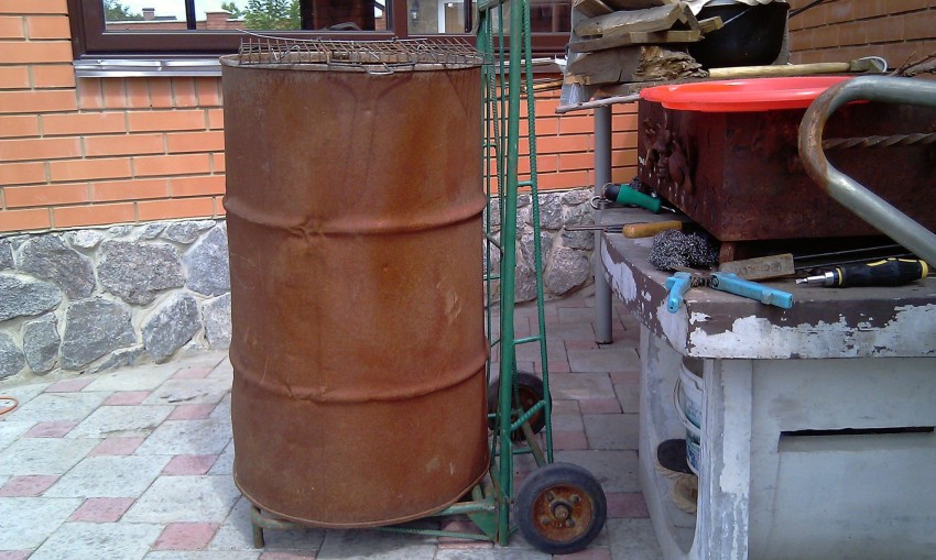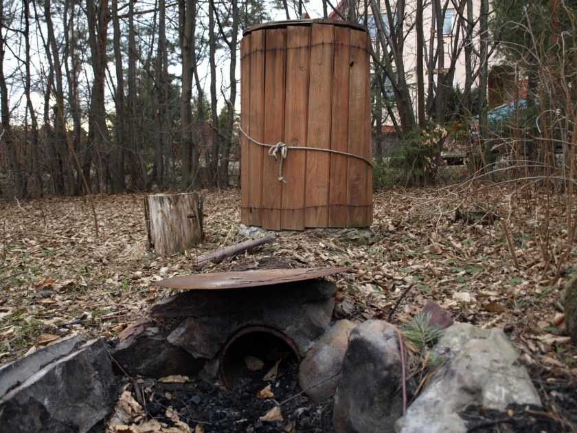 Конструкция в виде некой емкости с плотно закрывающейся крышкой. Изготавливается она практически из любых металлических баков-бочек.