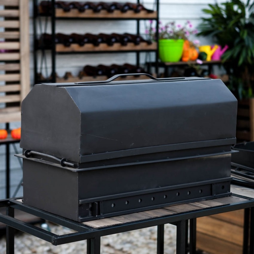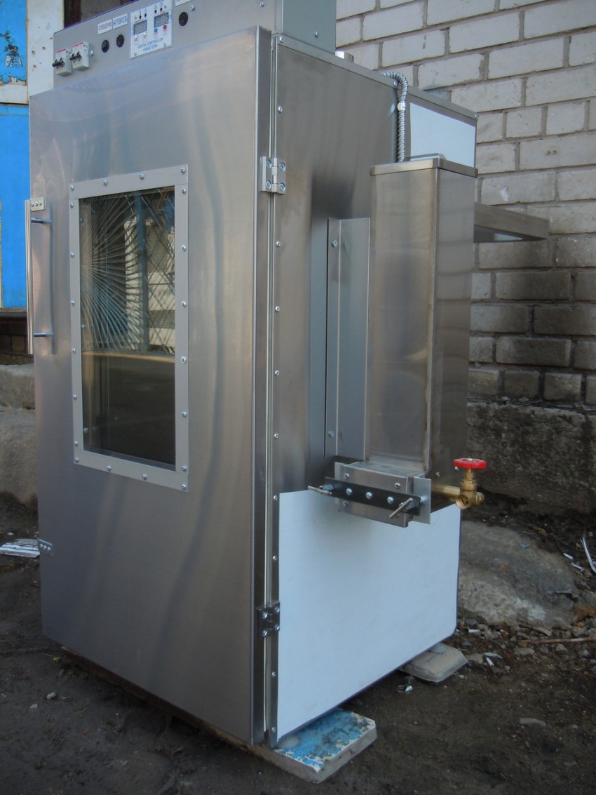 Дымоход и камеру нужно периодически очищать от нагара, решетки и крючки промывать моющими средствами. Неработающую коптильню желательно оставлять слегка приоткрытой для проветривания.
