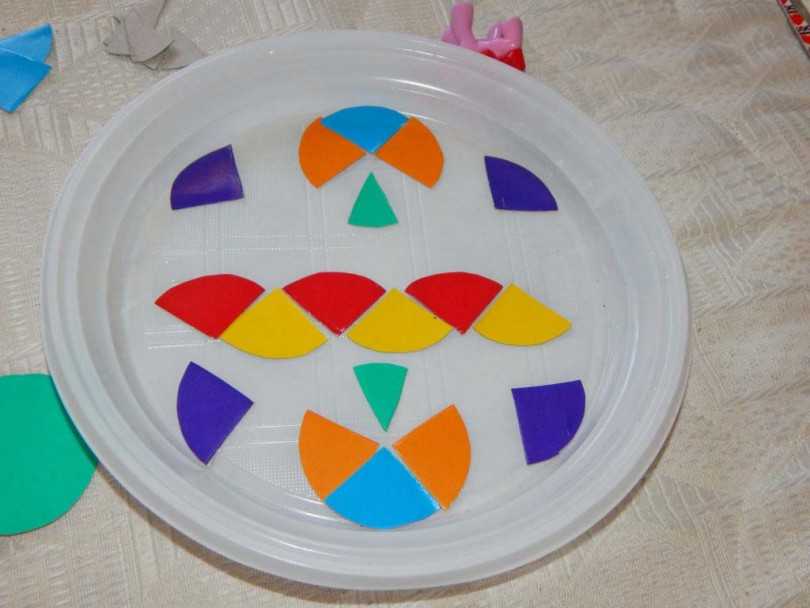 В качестве посыпки используем разноцветные кусочки фетра, разрезав их на полоски небольшого размера. Прикрепляем заготовки к кругу розового цвета булавками.