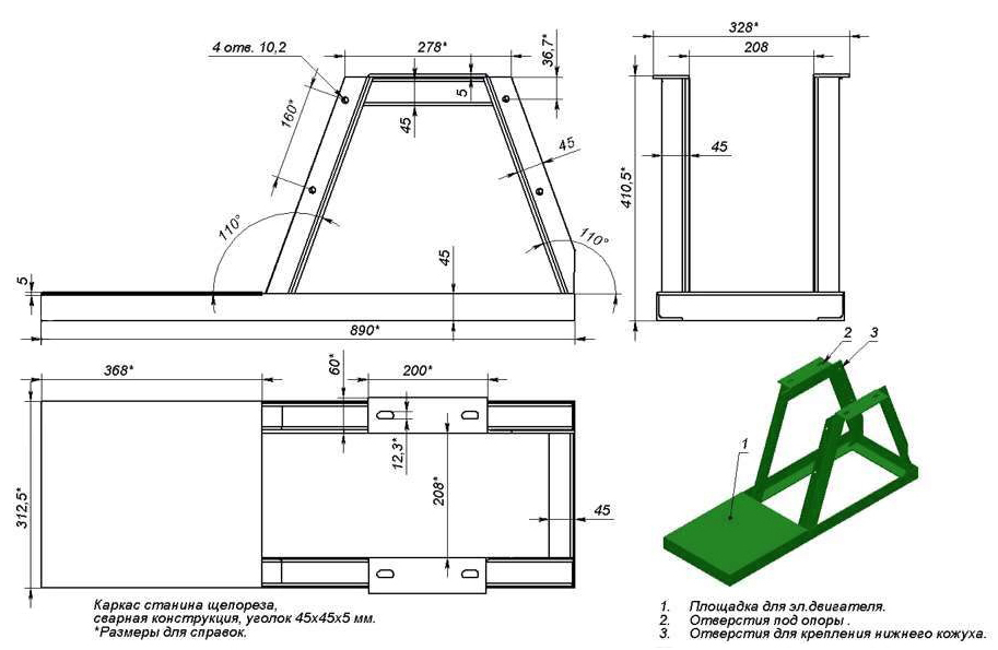 В вышеупомянутом абзаце упоминался ключевой этап создания самодельного щепореза. Дальше можно приступить к следующим действиям, которые подразумевают обустройство корпуса. Чтобы реализовать их, необходимо: