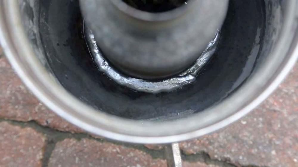 - Жидкий металл равномерно распределить по внутренней части емкости с помощью пакли.