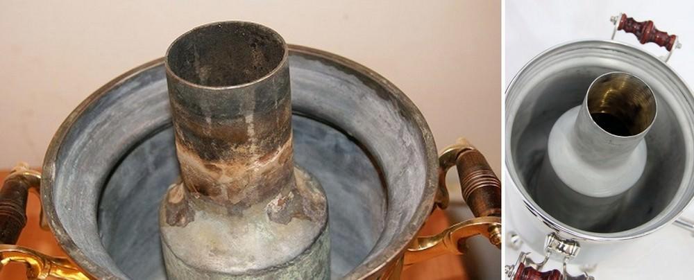 Часто в самоваре выходят из строя колосники. Прежде чем заменить деталь, необходимо выпаять трубу. Ее нижнюю часть нужно проверить на наличие трещин. После этих действий в трубу помещается новый колосник, тулово зачищается. Далее на свои места устанавливаются остальные детали самовара.