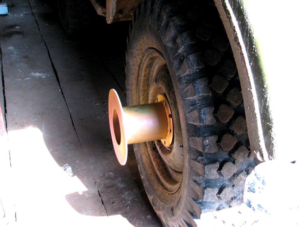 Можно также пустить трос не напрямую, а через систему блоков на бампере таким образом, чтобы трос выходил из центра бампера, хотя такое решение обладает сомнительными преимуществами. По возможности такая простейшая самодельная лебедка должна устанавливаться на колеса задней оси, т.к. при установке на переднюю ось есть риск погнуть рулевые тяги.