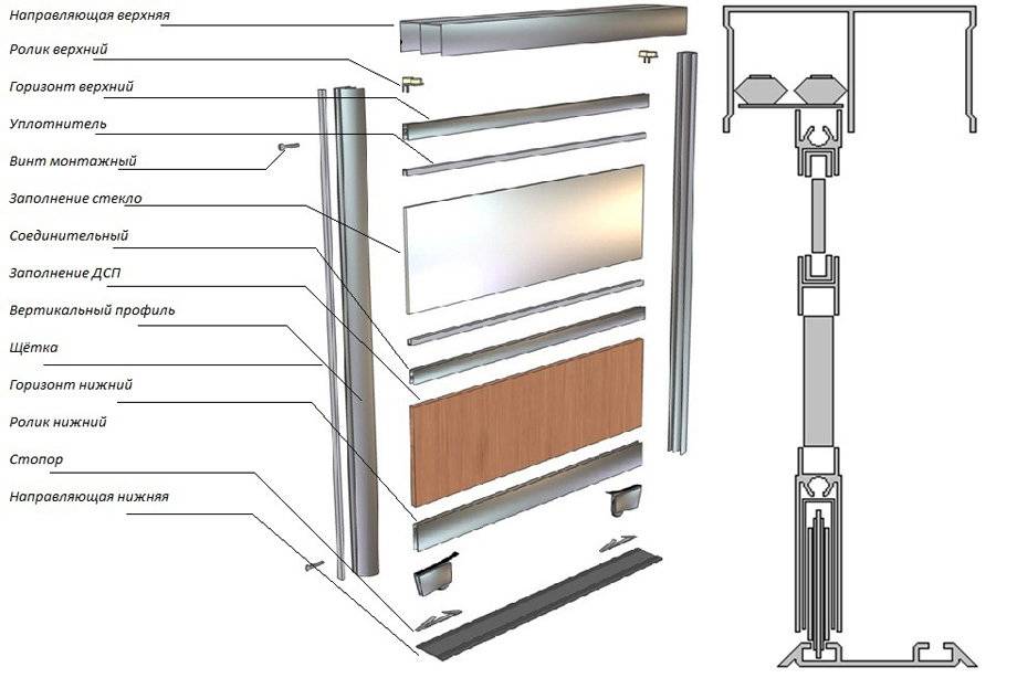 Самый трудный и щепетильный отрезок работы представляет сборка и установка раздвижных дверей шкафа купе