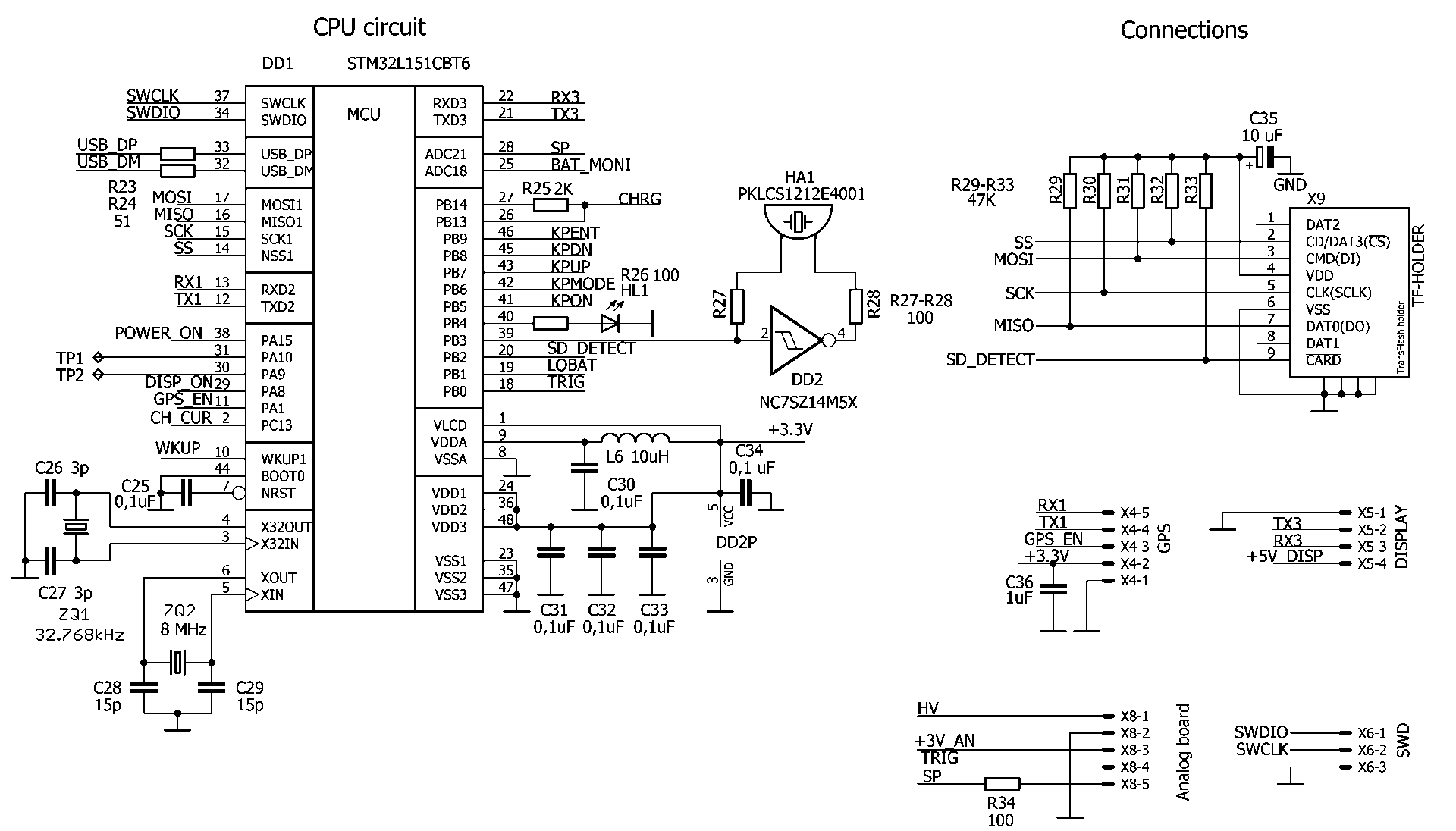 Схему дозиметра можно разделить на два функциональных модуля: высоковольтный блок питания и измерительная схема. Высоковольтный блок питания — аналоговая схема. Измерительный модуль на цифровых дозиметрах всегда цифровой. Это счетчик импульсов, который выводит соответствующее значение в виде цифр на шкалу прибора. Для измерения дозы радиации необходимо подсчитать импульсы за минуту, 10, 15 секунд или другие значения. Микроконтроллер пересчитывает число импульсов в конкретное значение на шкале дозиметра в стандартных единицах измерения радиации. Вот самые распространенные из них: