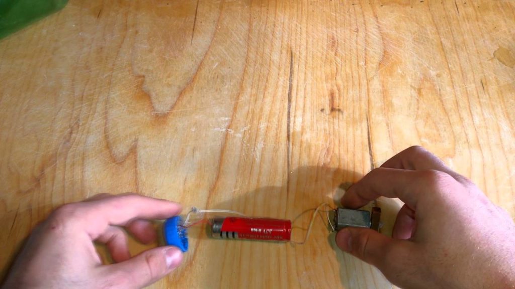 - Подключаем установку к источнику питания. Для этого нужно отрезать провода, идущие от двигателя на датчик оборотов. Оставшаяся проводка делится на пары таким образом, чтобы соединить между собой по проводу от щетки и статора, а к оставшимся двум проводам подключить двужильный кабель с вилкой для стандартной розетки. Все соединения нужно надежно заизолировать.