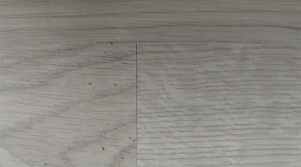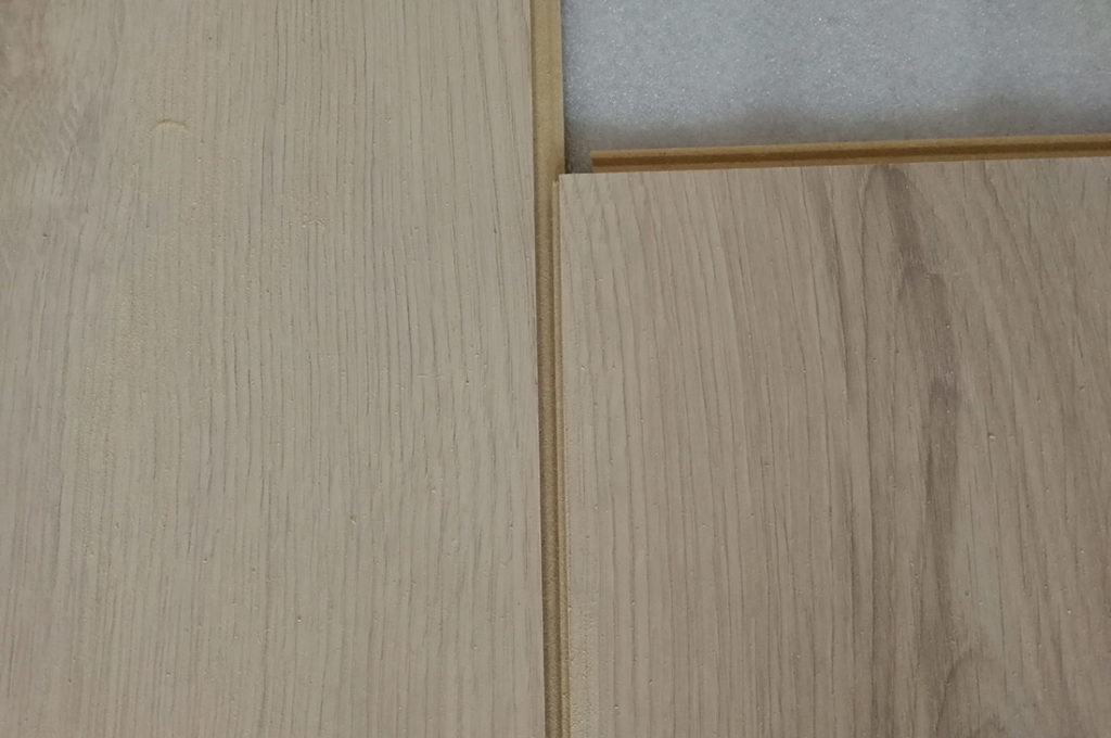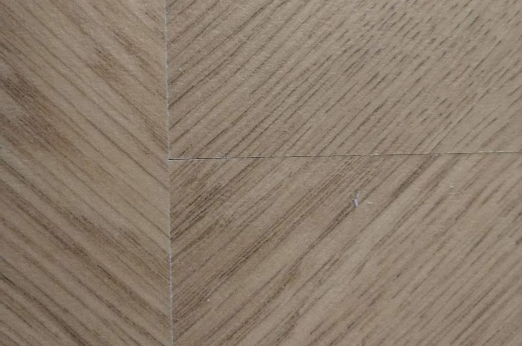 - У планки отсутствует угол в 90 градусов. Такой брак встречается. При сборке покрытия по торцевой части образуется щель, которую невозможно устранить. Даже максимально простучав, можно лишь частично убрать зазор. Он перераспределится между торцевой и длинной частью, став менее заметным.