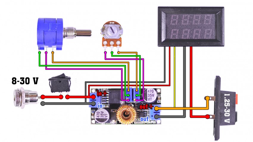 Важно! Если монтировать лабораторный БП, стоит остановить внимание именно на аналогичной схеме. Источник питания должен поддерживать любые форматы выдаваемого постоянного напряжения