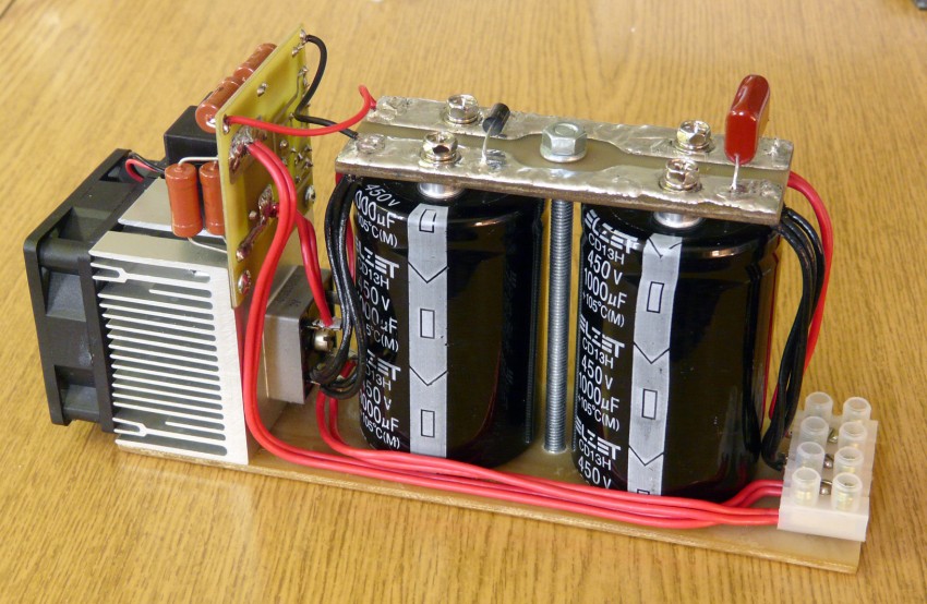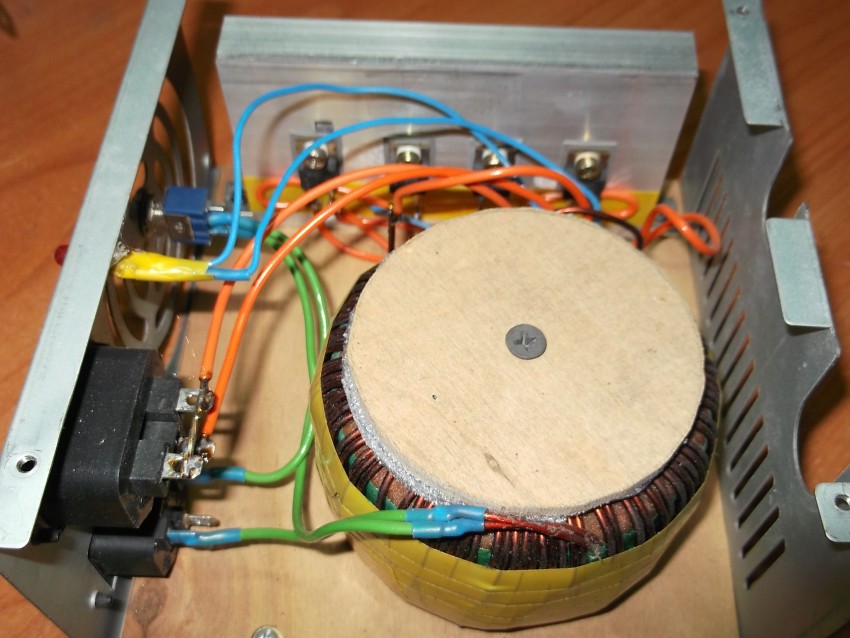 Состоит из двух частей: на первой собран стабилизатор и защита и, а на второй силовая часть.