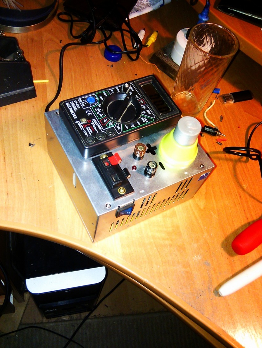 Привет всем самоделкиным. Многие радиолюбители знают, что блок питания это дорогостоящая часть всей электроники и зачастую приобрести хороший блок питания нет возможности, но у каждого начинающего разбираться в радиоделе есть старый компьютерный блок, который уже давно завалялся и не используется. В этой статье я расскажу как сделать лабораторный блок питания для различных приспособлений, таких ,например, как усилитель. Для начала необходимо определиться, что понадобиться для сборки, это: * Сам компьютерный блок, мощность моего была 350 ватт, чего хватит на все с запасом. * Фанера, у меня таковой нашлось 4 отрезка. * Электролобзик. * Отвертки. * Паяльник и паяльные принадлежности. * Дрель. * Наждачная бумага, зернистости покрупнее. * Гвозди, я предпочел гвозди с мелкой шляпкой. * Резиновые пробки, добытые из химических пробирок.