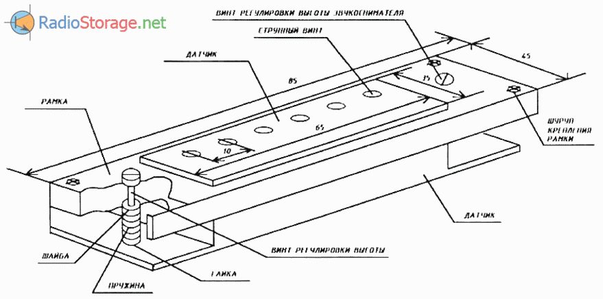 Датчики закреплены в рамках при помощи пружинно-винтовых механизмов, позволяющих регулировать расстояние между звукоснимателем и струнами. Это расстояние не должно быть больше 10 мм.