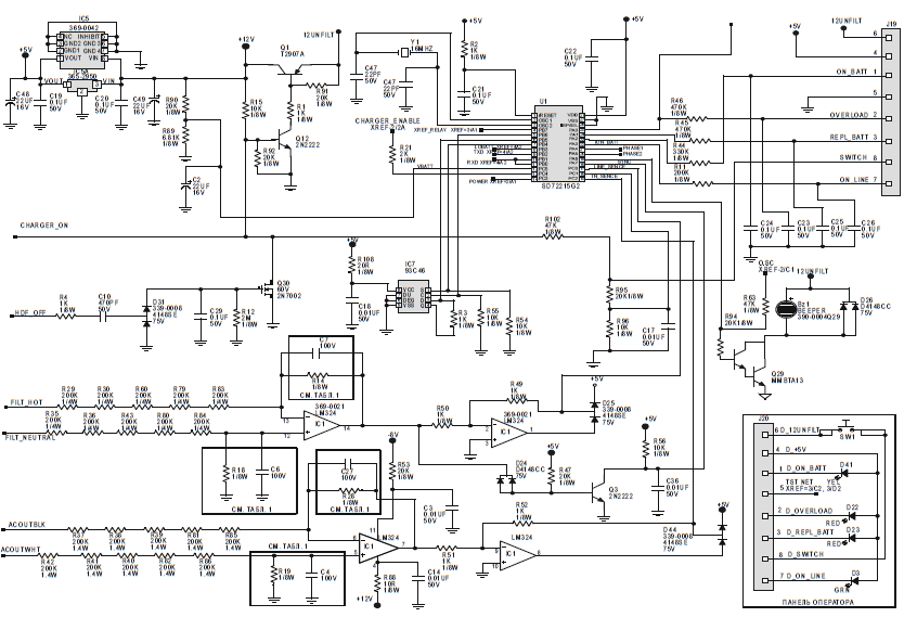 Функционирует устройство следующим образом: Пусть входное напряжение В в норме. Схема кабеля B Когда пропадает внешнее питание отключили свет, например на линии Line Fail является высокий уровень.