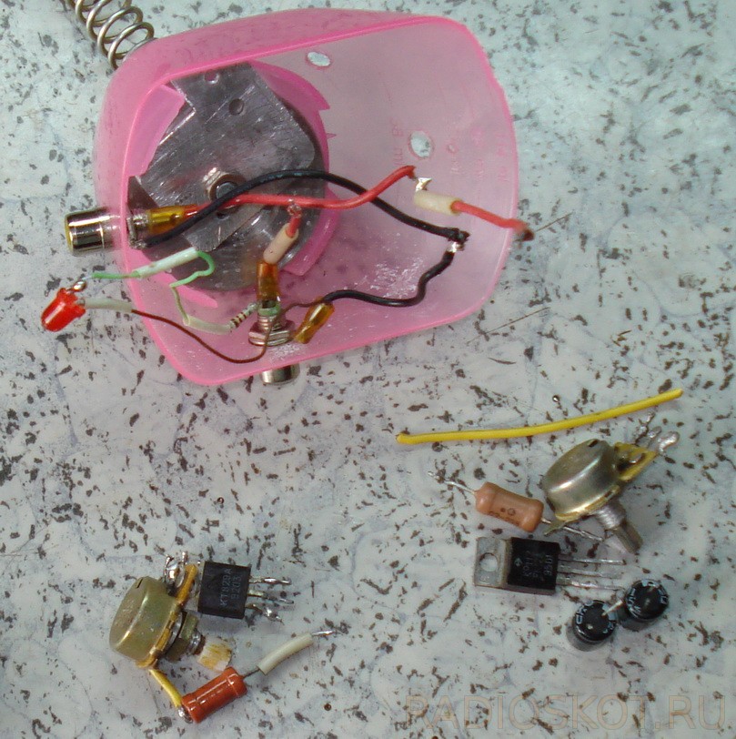 Транзистор, важно не перепутать его выводы (эмиттер и базу).