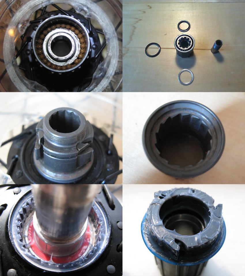 Техобслуживание задних втулок заключается в удалении старой смазки, очистке деталей от грязи, проверки их целостности и нанесении новой смазки. Нужно тщательно промыть не только подшипники и внутреннюю поверхность ступицы, но и резьбу на гайках и оси, так как в неё часто набивается песок. При закручивании он собирается на поверхности конуса, может вызвать хруст и даже повреждение шариков. Для этого обычно используется бензин, растворитель или специальные моющие средства. После очистки нужно нанести смазку на все подвижные детали.