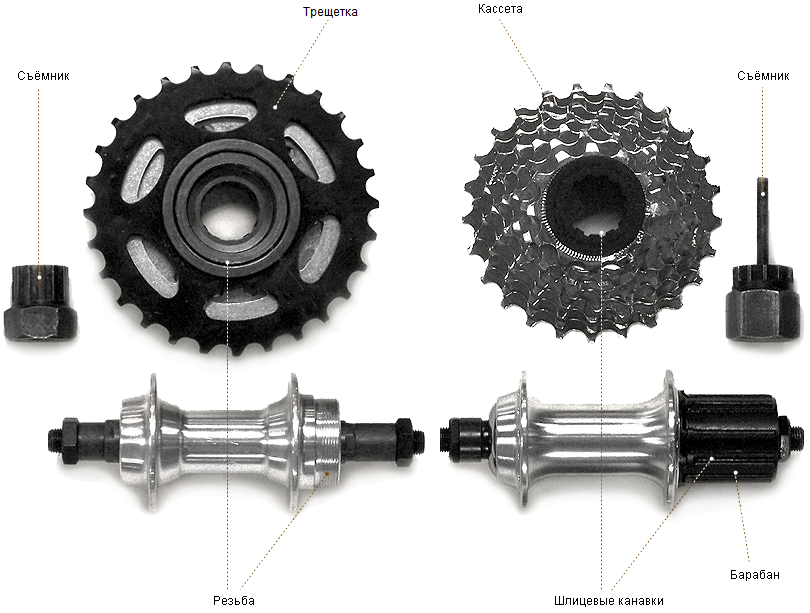 Иногда приходится разбирать сам барабан, на который крепится кассета со звёздами. В этом случае понадобится особый съёмник со шлицами. Но такая необходимость возникает крайне редко, и в этом случае всё же лучше обратиться в мастерскую.