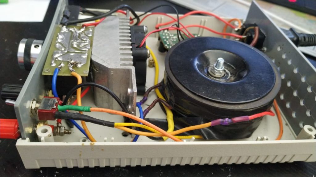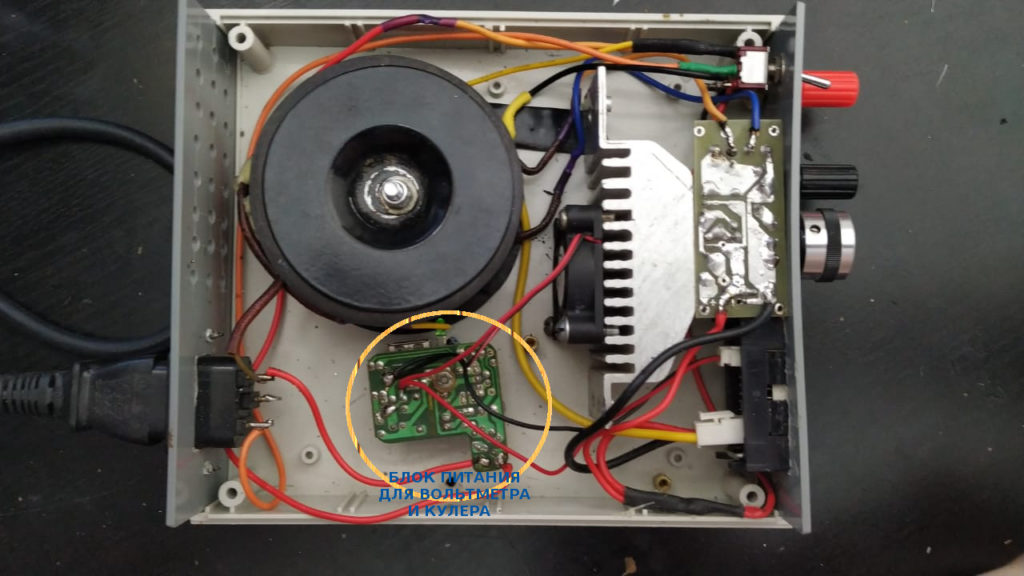 У выбранного мной трансформатора для стабилизатора на LM317 только одна вторичная обмотка на 27В. По этому для питания вольтметра и вентилятора я использовал плату от зарядного устройства мобильного телефона. Она выдает напряжение 5В и ток до 900мА.