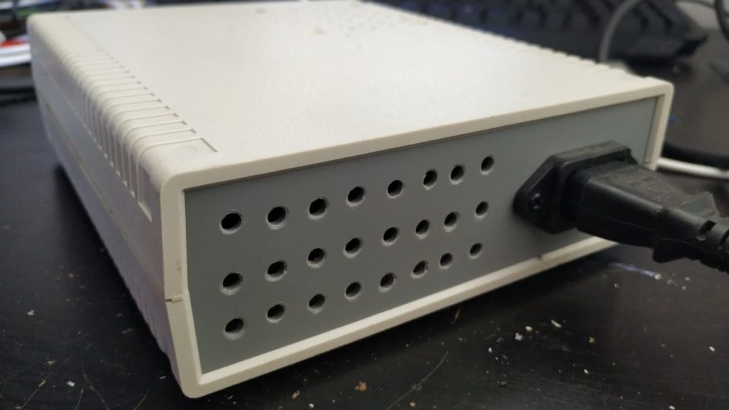 На радиатор установил кулер от старой видеокарты, для более эффективного охлаждения. В верхней и задней крышке просверлил вентиляционные отверстия.