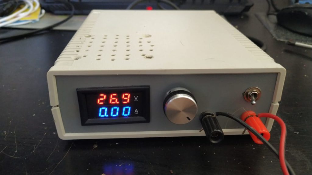 В примере показан стабилизатор напряжения постоянного тока, который рассчитан на 9-11 Вт подключаемой нагрузки.