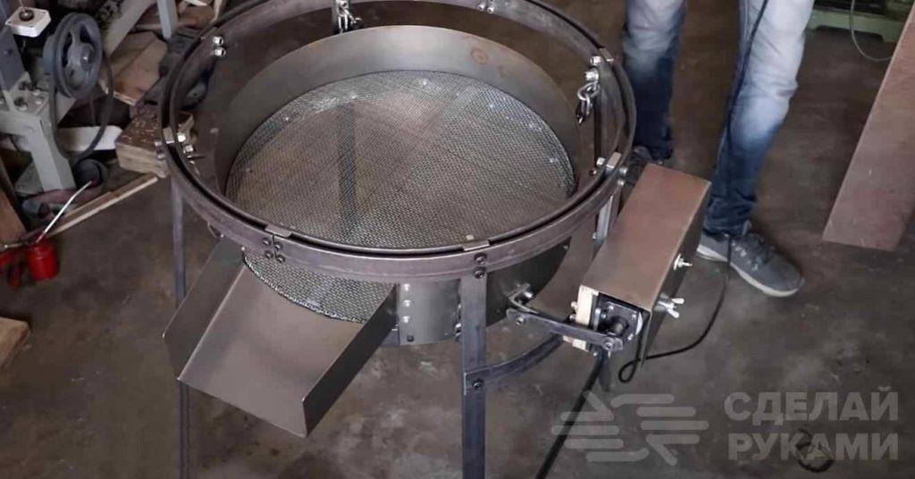 Такое устройство называют виброситом или виброгрохотом. Оно имеет достаточно простую конструкцию, а потому вибросито своими руками сделать совсем несложно.