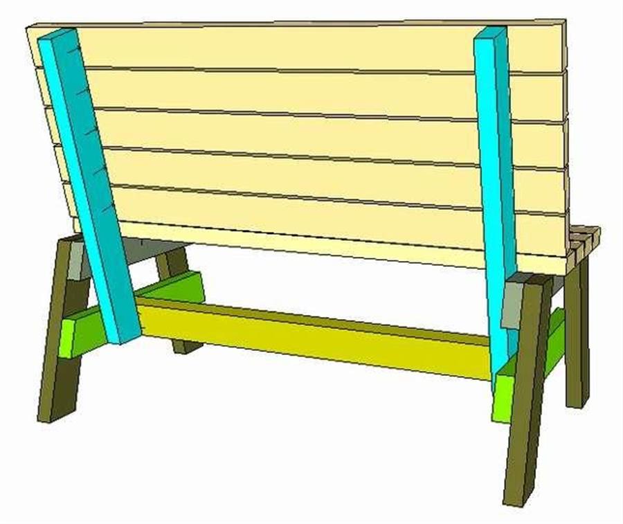У них будут свои, дополнительные опоры, которые идут параллельно ножкам стола. Теперь же вам нужно рассчитать технологию складывания стола так, чтоб обе скамейки сходились, а нижняя часть столешницы становилась спинкой лавочки.
