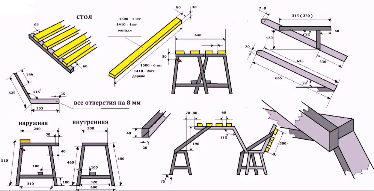 Чертежи самой удачной модели лавочки-трансформера из металла для дачи