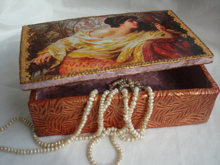 Вариантов декорирования самодельных шкатулок тоже множество. Вот некоторые из них: