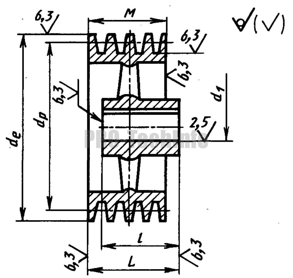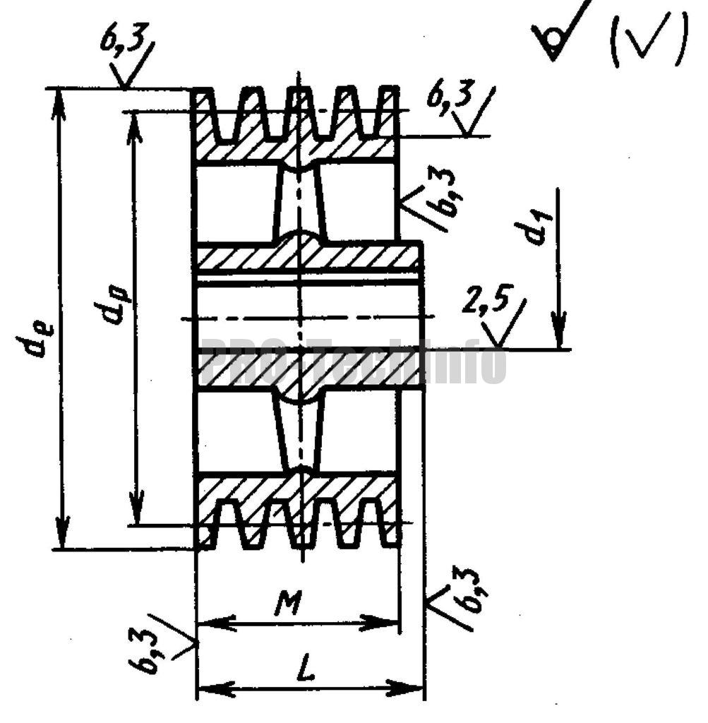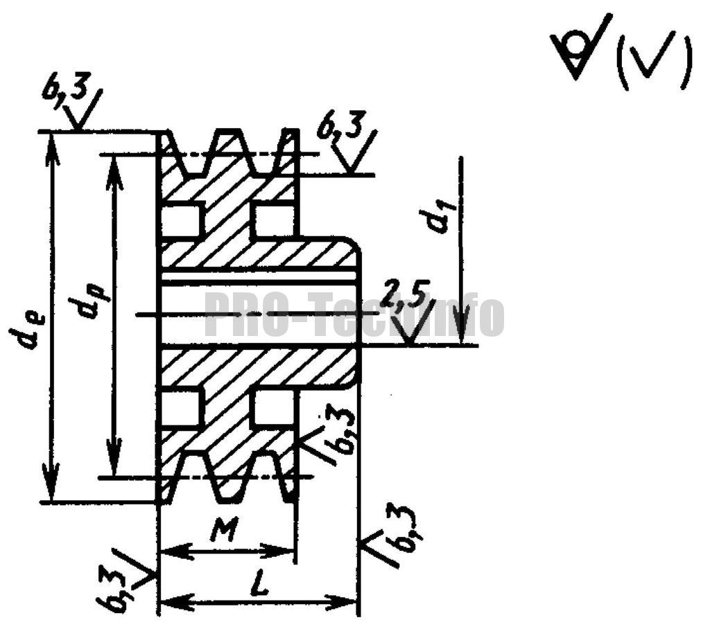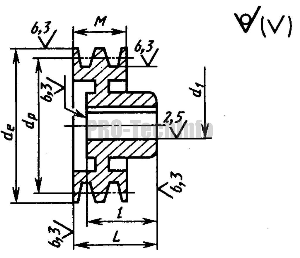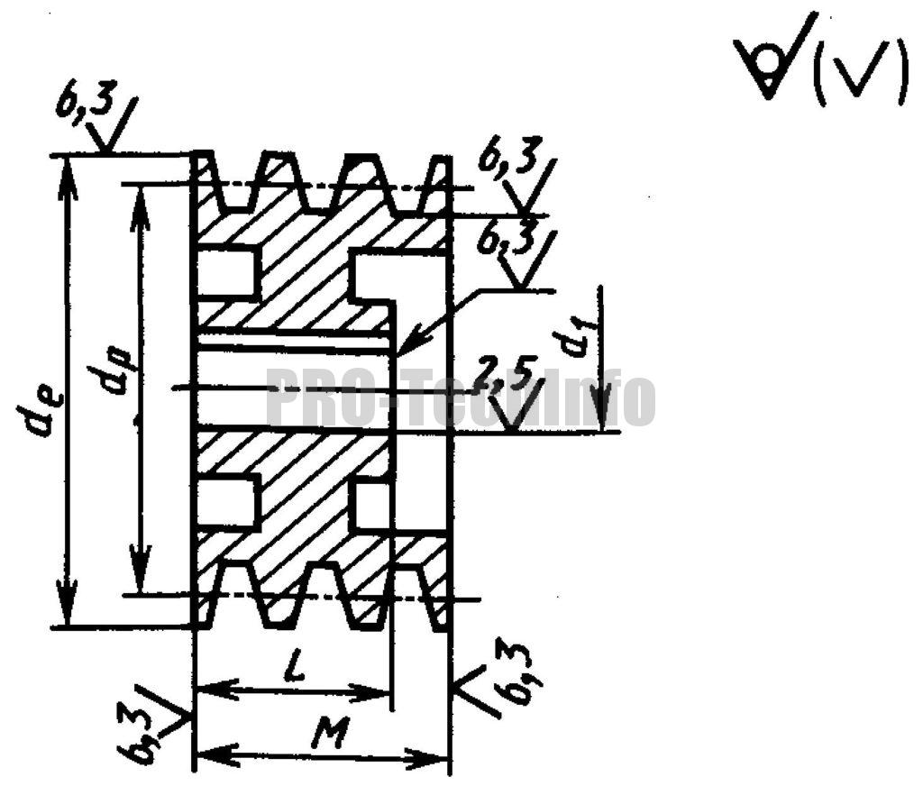 2.2. Номинальные расчетные диаметры шкивов должны соответствовать указанному ряду: 50; (53); 56; (60); 63; (67); 71; (75); 80; (85); 90; (95); 100; (106); 112; (118); 125; (132); 140; (150); 160; (170); 180; (190); 200; (212); 224; (236); 250; (265); 280; (300); 315; (335); 355; (375); 400; (425); 450; 475; 500; (530); 560; (600); (620), 630; (670); 710; (750); 800; (850); 900; (950); 1000; (1060); 1120; (1180); 1250; (1320); 1400; (1500); 1600; (1700); 1800; (1900) 2000; (2120); 2240; (2360); 2500; (2650); (2800); (3000); (3150); (3550); (3750); (4000) мм. Примечание. Размеры, указанные в скобках, применяются в технически обоснованных случаях.