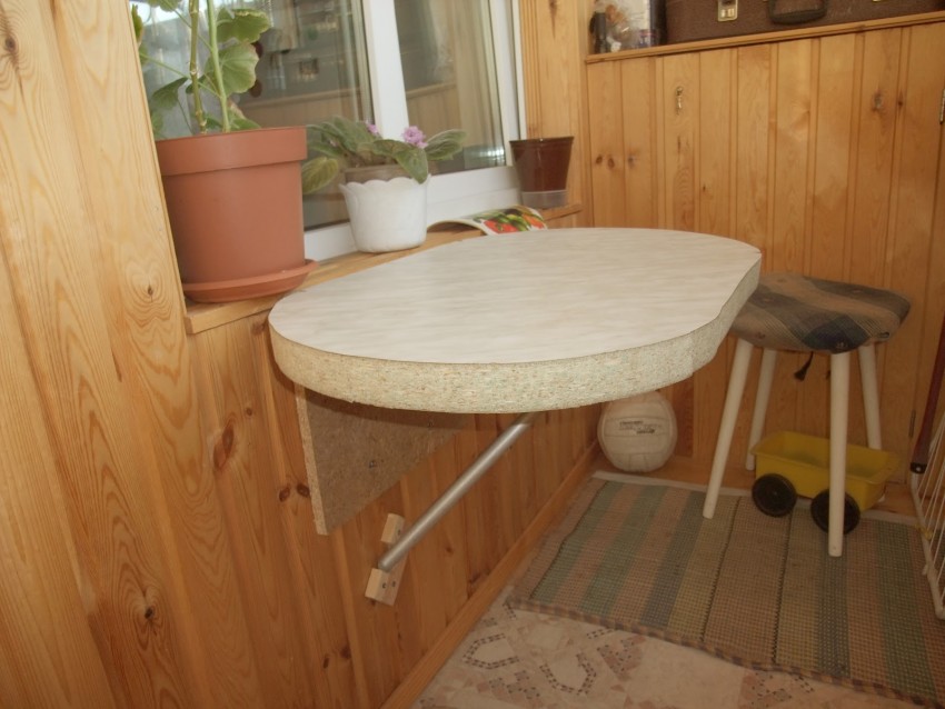 - откидные столики, размещаемые на небольших балконах или в малогабаритных кухнях. С помощью специальных рояльных петель столешница крепится к стене за счёт чего существенно экономит пространство в сложенном виде.