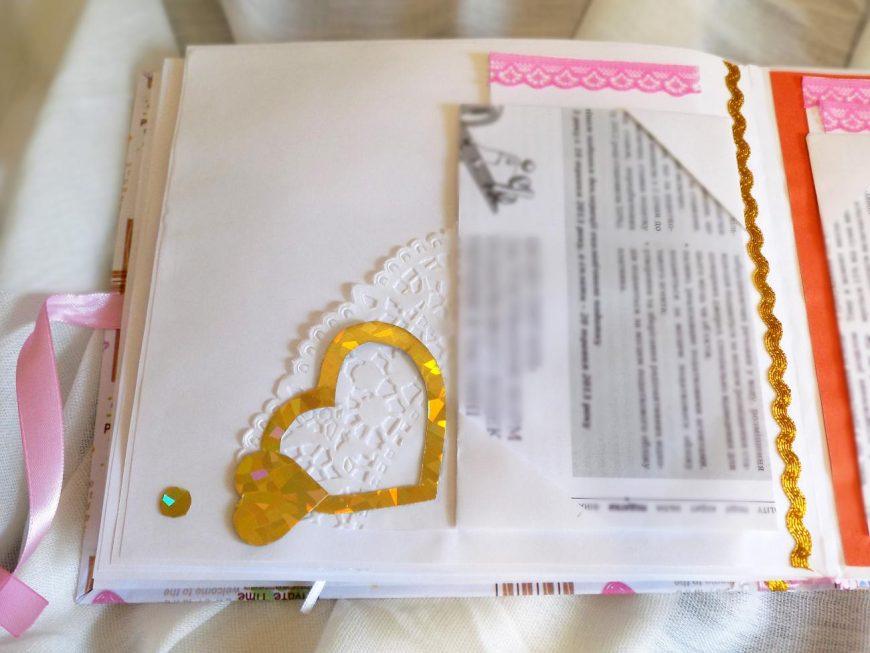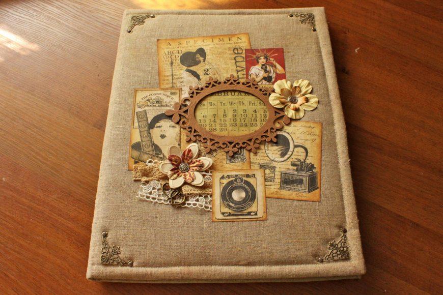 - Оформление книги лучше всего исполнить в стилях шебби-шик или винтаж, применить к ней техники журналинга и дистрессинга.